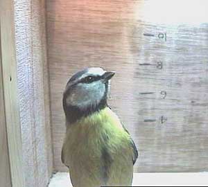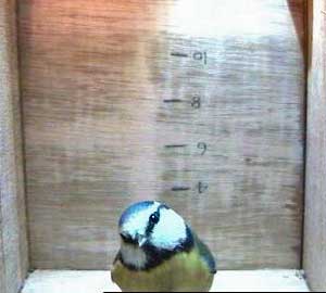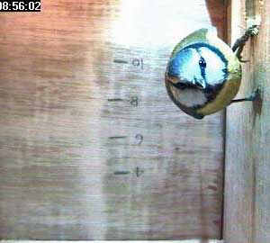 This poor bluetit still seems very worried by the other bluetit he can see in the glass. Perhaps he thinks it's a ghost as it does not look solid but appears to be able to walk through those other things he cannot get at on the other side of the glass. I shall have to think up some other way of preventing the nesting birds to get at the side mounted camera and the other stuff in the other side of the nest box!