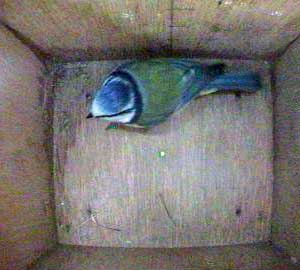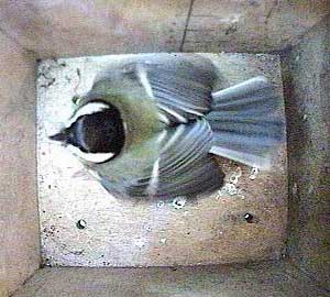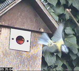 This rather confused image is all we managed to catch of the bluetit leaving the nest box.