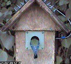 Apparently it isn't so he pops down to the nest box hole.