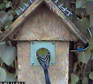 As usual, if there is no other bird around, he will go down onto the nest box hole to have a closer look.