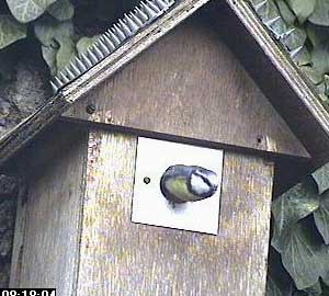 This is one of the un-named bluetits having another look into Greta's nest box. This is the first time we have seen this for some days - ever since Gustaf had a go at one of these bluetits a few days ago in fact.