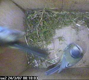 Fay's nest seems to have been in this state for ages! Still, no wonder when she spends so much of her time taking nest material in and out of the nest box.