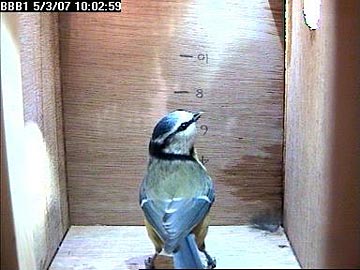 This is the box after it had been removed from the wall outside our house and had the glass plate and most of its supports removed. The planned nest area is at the right hand side of the picture. Power and video cables come into the box via a plate upon which four phono sockets have been mounted. There are two power connections - one being for the cameras and the IR lighting, and the other is for the LED lighting.