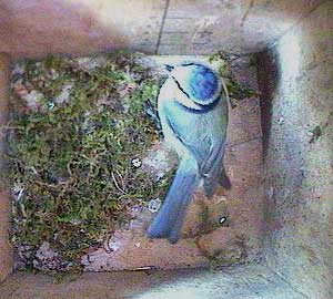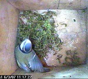She is having a fine time with the moss kindly brought in by another bird! (Well done that great tit!)