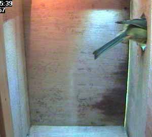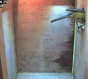 Now, what's he looking at up there? Probably the other camera in the ceiling of the nest chamber.