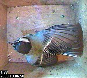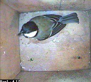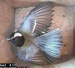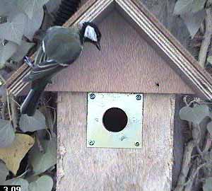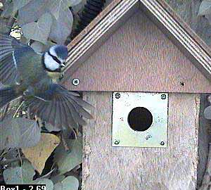 It's now 20 minutes later and Box1 has another visitor - a bluetit!