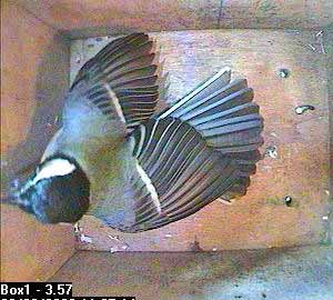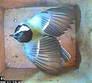 Over at Box1, the great tits seem to be in a great confusion about who is a friend and who an enemy - either that or there is more than one great tit pair trying to take over the box!