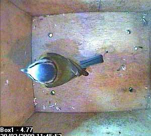 In reality, it was over half an hour later before a great tit came to have a look at Box1.