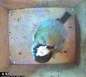 So the bluetit hasn't completely given up on occupying Box1 then. Let's hope for his sake that he gets out before the great tit returns.