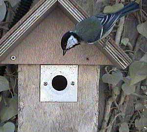 This year I have put back the aluminium plate over the entrance of Box1 in order to restrict it to 28mm. According to the RSPB, this should be big enough for great tits as well as bluetits, but we have never found great tits willing to enter a box through a hole of this diameter.