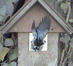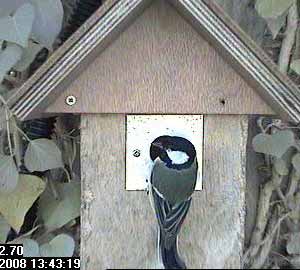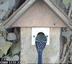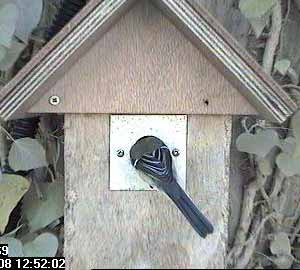 A couple of seconds later and he seems to be displaying on the entrance hole. You might almost think that there is a foreign bird inside but according to the inside camera, that's not the case!