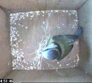 Finally, it's not just the great tits around Box1 that are getting excited - here is a bluetit in Box2 who seems to think it's time to start nest building!