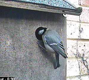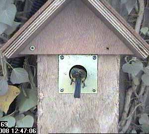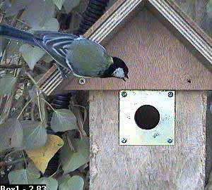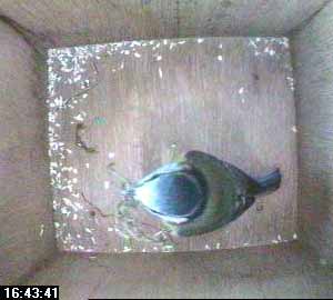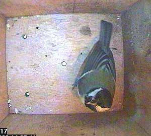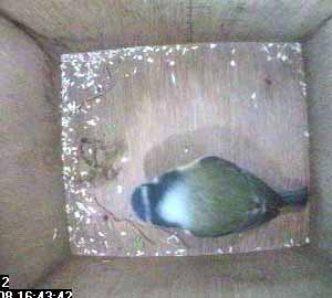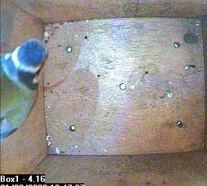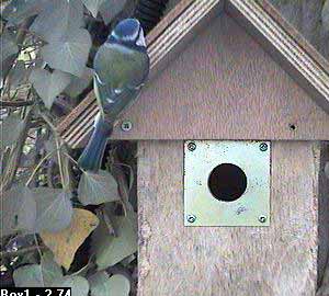 This is the bluetit entering Box1. Such visits have been much rarer since the great tit started going inside.