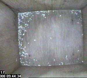 She (it must be the female as male bluetits play no part in nest building) takes the nesting material inside the nest box ...