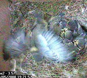 This chick is having a really good wing flapping session - this is a sure sign that the chicks will be fledging soon. Our estimated fledge date is 25th May, but it is difficult to believe that they will stay that long in the nest box.