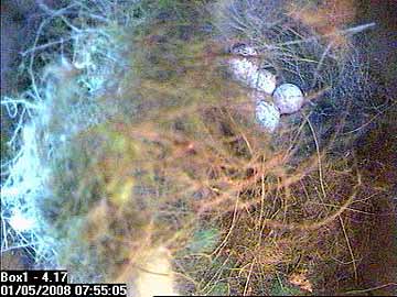 What happened in Box1 is still a complete mystery to us. It is several days since we last saw Gelda and much too late for there to be any hope for the eggs. We don't think it was a simple case of Gelda deserting the nest. Phil was still around, although he did have too low a profile for our liking, but more importantly, the nesting material in the nest box looked disturbed.