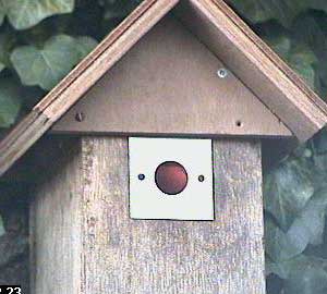 Although it has been nice to have great tits occupying this box for the last few years, I feel that bluetits are far more interesting birds than great tits so I have put a bluetit sized metal baffle over the great tit sized hole. We shall see what happens!