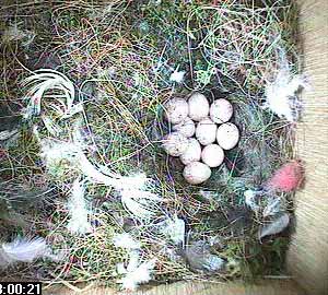 Fay has decided that it is time she started roosting in her nest box. For a female that has not been roosting there prior to nest building, this is normally a sign that she is about to start laying eggs.