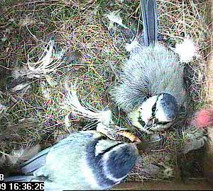 Bertie continues to feed her from the mealworms put out nearby by Elizabeth.
