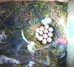 Is this an egg in Fay's nest? This year the nests in Box1 and Box2 look so similar that I have sometimes confused them when writing this diary. At least the number of eggs in each nest is substantially different!