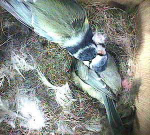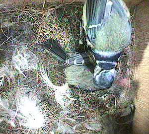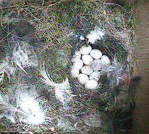 We have been hoping all day to catch a glimpse of two eggs in Fay's nest. This very unclear picture is the best we can do.