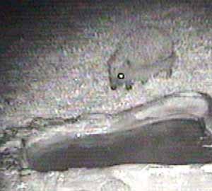 Last time we left the cameras running over night we didn't see one. Tonight we were luckier. Now we shall have to rearrange the feeding arrangements so that we can put out some food for him/her.