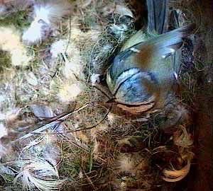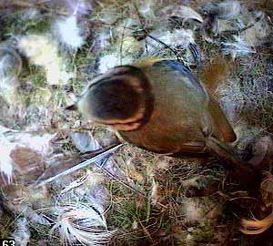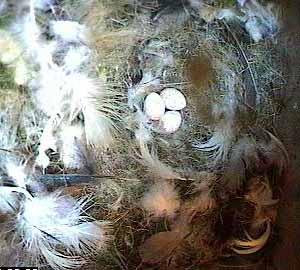 We are concerned about what is happening in Fay's box. We have not been able to see her eggs for four or five days. Also we can never be sure if the birds we see around outside are Bill or not.
