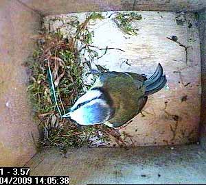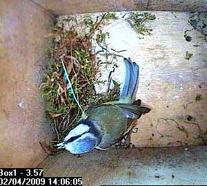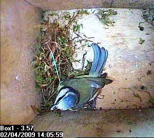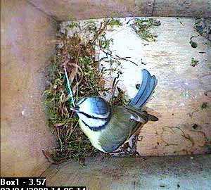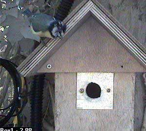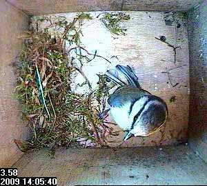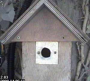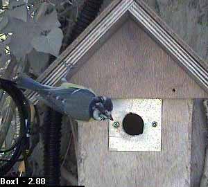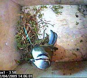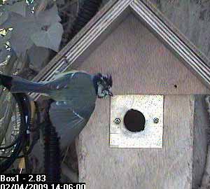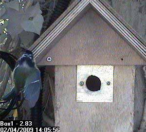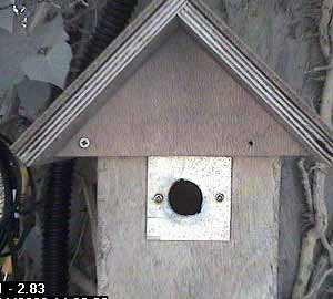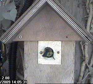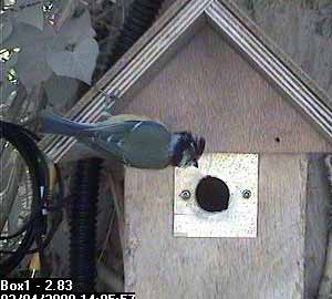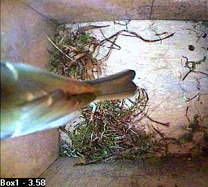 Thirty seconds later, Fay leaves the nest box.