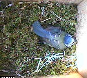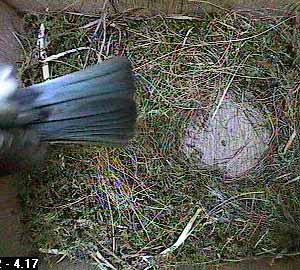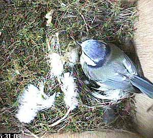 She hasn't brought much more nesting material into the box recently and spends much of her time in the box wriggling around in the nest cup.