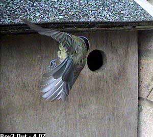 Is anything going to happen with Box3? We sometimes feel this box is doomed. In the last two years we have had three failures (last year a bluetit pair built a nest and then vanished. Then a great tit pair took the nest over, laid eggs which hatched - and then the male lost interest and soon disappeared. All the chicks hatched, but they all died.)