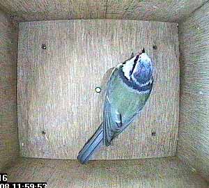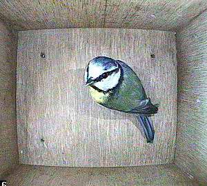 The first bluetit in a box this season. The only bird we have had previously was a wren in Box3 on 1st December
