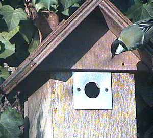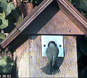 An interesting shot of a bluetit fanning its tail to brace itself against the nest box. Some years ago in 2003 we had another bluetit that did this that we called Fantail!