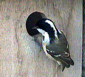 Forty minutes later, a coal tit has a look at Box3. The hole on this box is big enough for a great tit, but that doesn't stop this coal tit for having a look around.