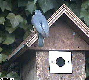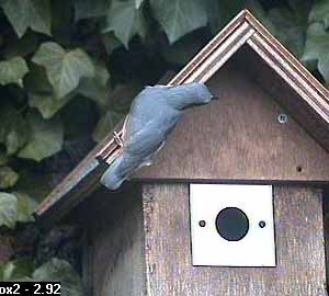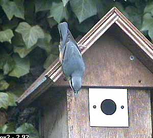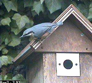 I don't know quite what is happening here - but clearly the message the nuthatch would be getting is that this box is occupied - "Keep Out!"