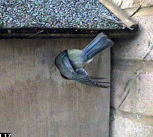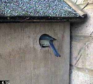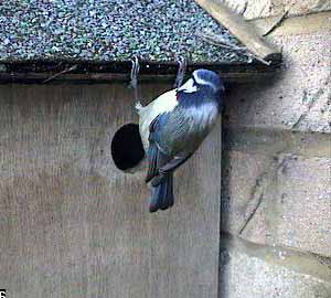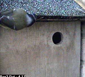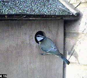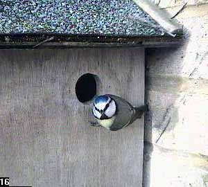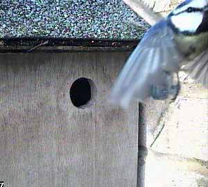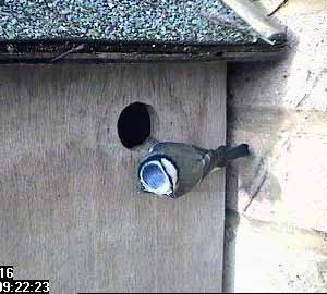The first indication that something might be happening was at about twenty past nine when a bluetit came to the nest box entrance.