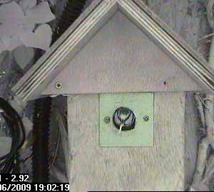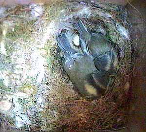 We haven't seen the woodpecker for several days now. Let's hope he doesn't pay a visit when one of the chicks is right under the hole like this one is!