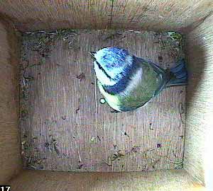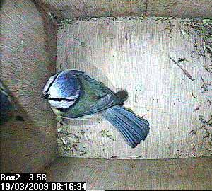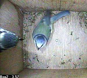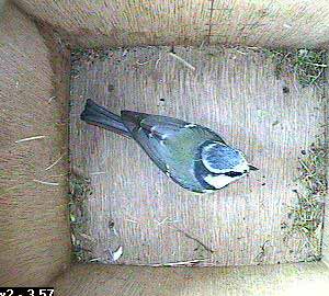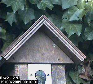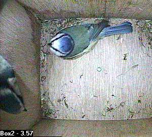 She is still there when Bertie arrives on the nest box hole ...