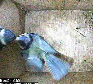 Bertie appears to have fed Bella in the nest box two times today.