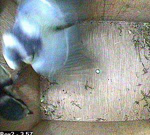 We start with Bella in the nest box on her own.
