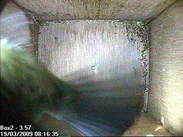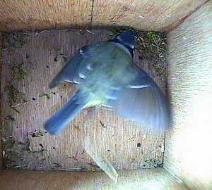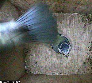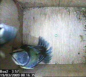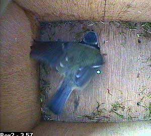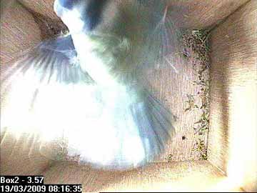 Suddenly, Bella flies up inside the nest box ...