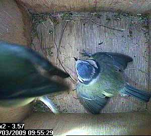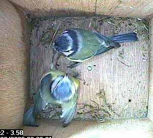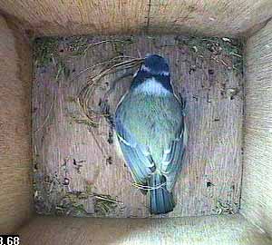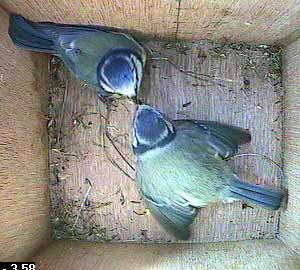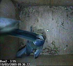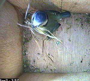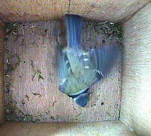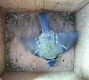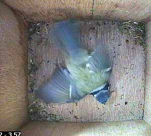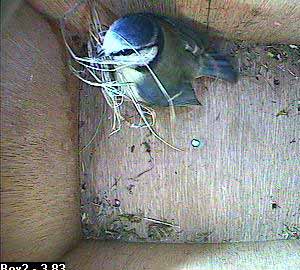 Back again - this time with hay. But where is the large beakful of moss she brought in last time?