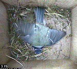 Fay seems to have the habit of hitting her head against the walls of the nest box when doing a nesting wriggle.
