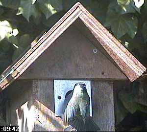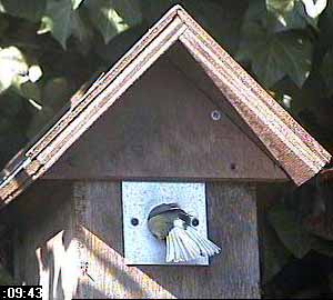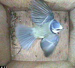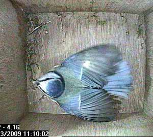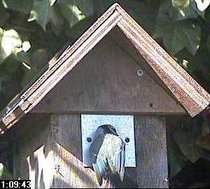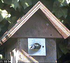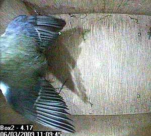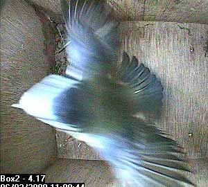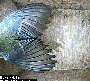 Bertie arrives at the box's entrance. He looks as though he is already in a bit of a mood as his feathers are a bit fluffed up.