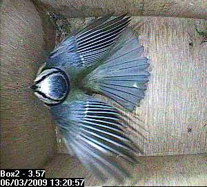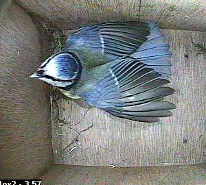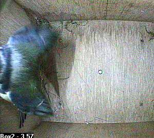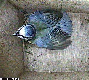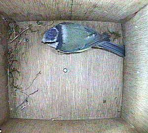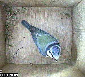 The funny thing is that the box was empty at the time! Perhaps this is a newcomer to the nest box?