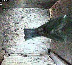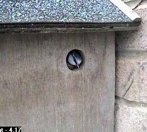 Another unusual picture. This time it's because normally when the male manages to entice a female to join him in the nest box, he departs so quickly all you get is a blur! This time Bertie stayed long enough for the system to take a clear picture.