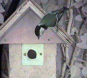 It still looks as though a pair of great tits is house hunting.