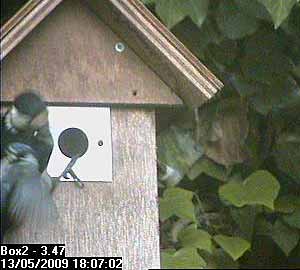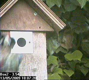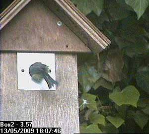 Towards the end of the day, there was a valiant attempt by Bella to defend her nest box from a woodpecker. Thanks to Andy Davies who was watching in Tokyo, and who gave us feedback about this sequence, we can show it below.