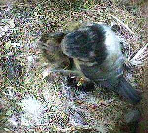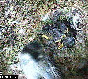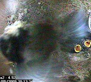 Within a couple of minutes of my finishing the job, Bella was back with some food for her chicks! (This picture was taken at 10:10:59am!)