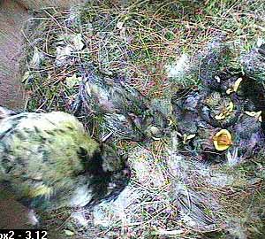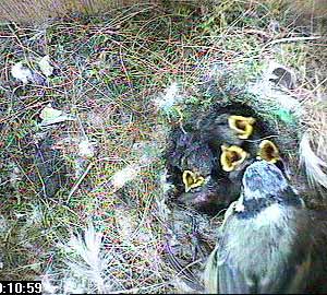 The construction of the Boxwatch nest box makes this a simple and quick job and the chicks were too young to have any thought of danger - they just thought I had come to feed them! This picture was taken at 10:09am after the chick had been removed. The whole job had taken less than 2 minutes.