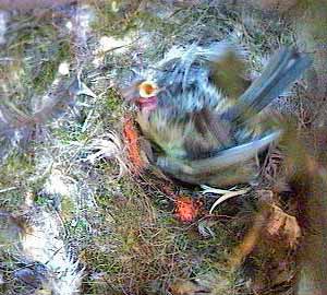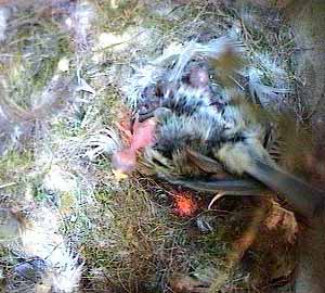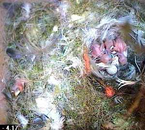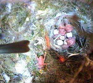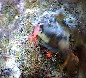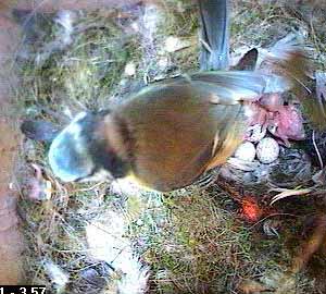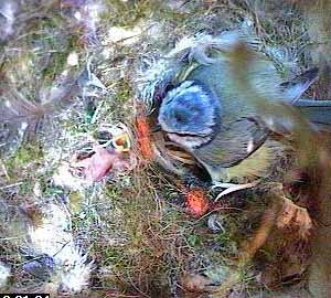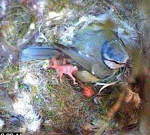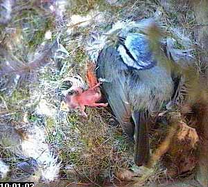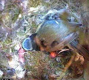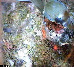 This is different though - as Fay turns head down in the nest cup, she squeezes the chick right out of the nest cup.